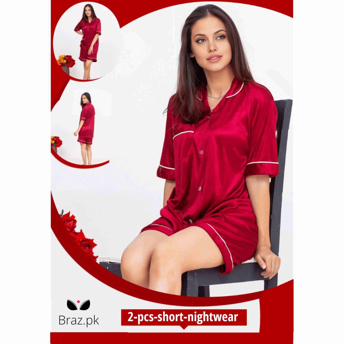 Enjoy the perfect balance of style, comfort, and elegance with this short nightwear set – available now at Braz.pk.